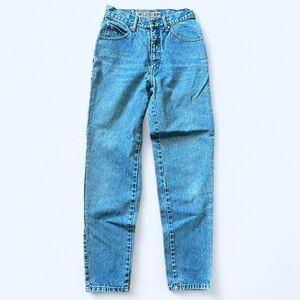 High-waisted, straight-leg vintage blue jeans with a 26" waist and 10" inseam from Levi’s