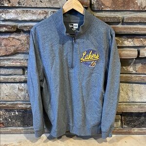 Stay cozy and stylish with the New Era Los Angeles Lakers 1/4 zip sweatshirt. Perfect for any fan, this sweater features a comfortable fit and a classic design. Embroidered chest logo. 100% cotton fabric. Gently used preowned condition, see photos. Most items ship next business day.