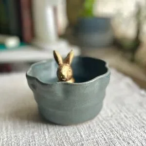 Handcrafted Studio Pottery Blue Bowl 3” Tall