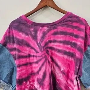 Womens Y2K Tie Dye Distressed Jean T-Shirt Plus Size 3X Pink Blue Cropped Boho