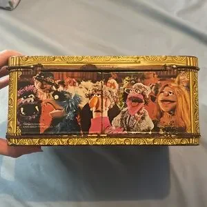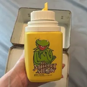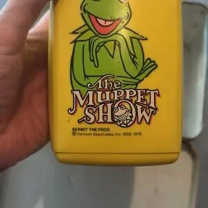 Vintage lunchbox featuring the Muppet Show dated 1978 trademark of Hanson Associates Inc. In decent condition for the age with somewhere specifically on the Fozzie bear side. Features a bunch of different characters, including Miss piggy, Dr. teeth and the electric mayhem and Kermit the frog on the front. The thermos also features scream at the frog and has the original lid and lid cap. There is somewhere on the thermos and Kermit’s eyes are worn away. I imagine from the thumb resting there. This is an awesome piece of Muppets history and a great peace for any Muppets fan. I absolutely love this, but I’m planning to move and I’m trying to limit my stuff.