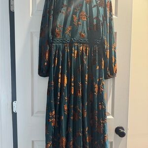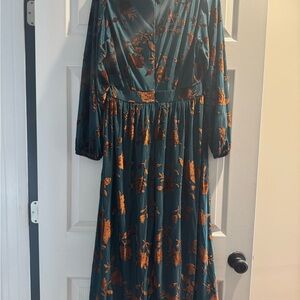 Elegant floral maxi dress in jade and bronze. Perfect for any occasion with its stylish design and comfortable fit. Sold out on website. NWT.