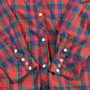 Vintage 70s Levi's Pearl Snap Shirt 40 XL Western Cowboy Red Plaid Yoke