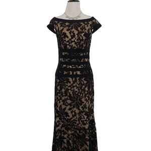 Tadashi Shoji Women Formal Short Sleeve Black Lace Gown Dress Whimsigoth Size 6