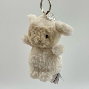 Adorable plush keychain with a smiley face. Features a soft tan body and brown feet. Perfect for adding charm to your bags.