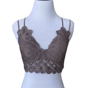 Elegant lace bralette in a beautiful taupe color. Perfect for adding a touch of sophistication to your intimates collection. Excellent like new condition! Removable pads.