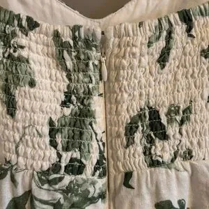 Size small TALL. Linen/cotton blend, lined, adjustable straps, smocked back with a zipper closure. In great pre-owned condition! No stains or tears. Non-smoking & dog friendly home.