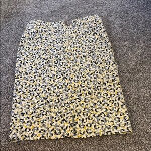 Elevate your wardrobe with this chic leopard print pencil skirt. Featuring a blend of blue, black, gray, and yellow. Flattering and comfortable fit! Fully lined. In very good condition.