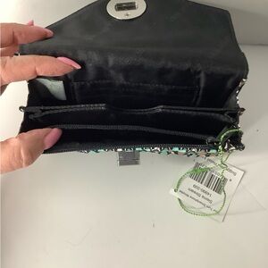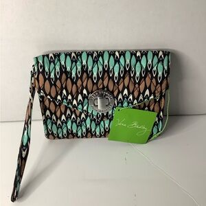 NWT Stylish Vera Bradley Sierra Stream Pattern. Your turn wristlet featuring a unique brown and green pattern. Perfect for adding a touch of elegance to any outfit. Turn lock closure, black Vera Bradley nylon lining, ID credit card pockets, two separate sections and a zippered pocket. This is new, unused clean wristlet with no rips, stains or odors. Pet free smoke-free environment fast shipping.