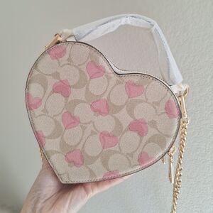NWT Coach Heart Crossbody In Signature Canvas With Heart Print Light Khaki Chalk