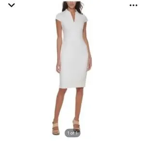 This elegant white dress features a sleek design with cap sleeves, perfect for any occasion. Its classic style offers a timeless look.