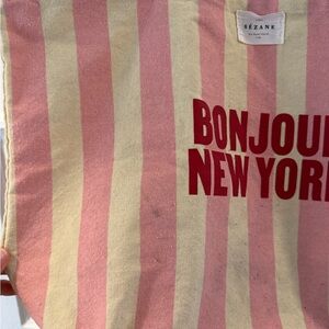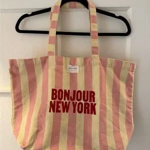 Sezane Pink and Yellow Striped Tote Bag “Bonjour New York”