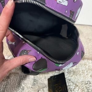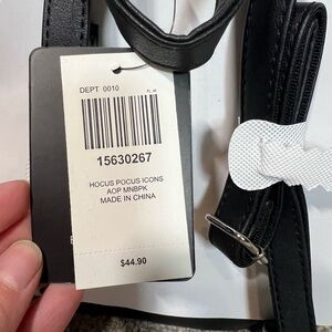 Black backpack with Hocus Pocus theme. Features adjustable straps.