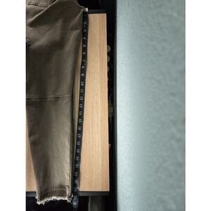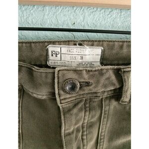 Olive khaki (Moss) utility style cargo skinny leg pants from Free People. Button fly closure. Distressed raw hem. In excellent condition — no flaws or major signs of wear. Size 28, waist flat across = approx. 14-in, rise = approx. 9.5-in, inseam = approx. 26-in. Has some stretch. Cotton, rayon, spandex blend. No model. No trades. Add to a bundle for a 10% discount.