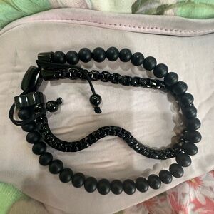 Elevate your style with this sleek black beaded bracelet. Perfect for any occasion.
