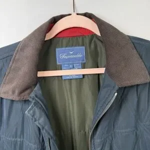 This is a Faconnable Men's Full Zip Vest Jacket in navy blue, designed for outdoor activities. It is made of lightweight polyester with a quilted design, featuring a basic vest style. The size is medium (M) and it is suitable for regular fit. Ideal for layering during active wear.