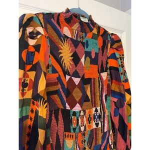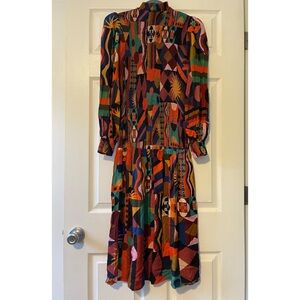 FARM Rio Multicolor Tropical Shapes Lenzing Ecovero Viscose Midi Dress N…