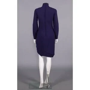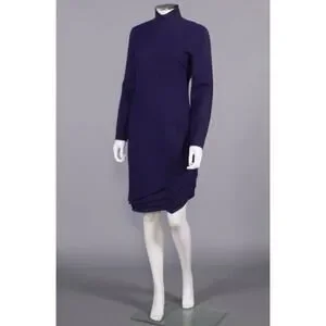 Purple wool long sleeve dress w/ turtleneck & geometric layered skirt, label “Gianni Versace”, excellent condition.