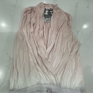 Stylish ombre romper in pink, gray & white. Features a sleeveless design with a drawstring waist.