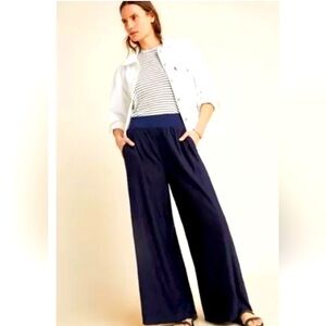 Anthropologie Delano Knit Wide Leg Pants Pull-On Blue Wavy Women’s Size XS