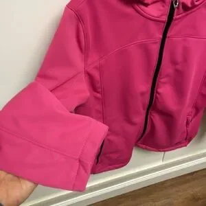 Spyder Women’s Jacket Pink w black embroidered Logo & zipper Size Large hooded