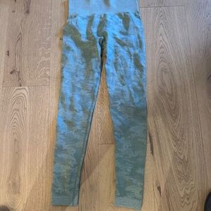 GYMSHARK CAMO SEAMLESS LEGGINGS SAGE GREEN/GREY WOMENS SZ XS/S