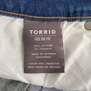 TORRID 'FEEL THE FIT' SHORTS ZIPPER-FLY RAW-HEM MED-WASH BLUE WOMENS (12)