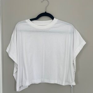 Elevated jersey. Square t-shirt in structured, vintage jersey. Crewneck. Rib trim around neck. Clean finish. We love this layered under and over everything. Machine wash cold.