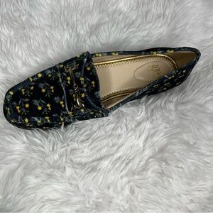 Cabi Carnaby Women’s Navy Blue Floral Velvet Loafer with Gold Hardware Size 7M