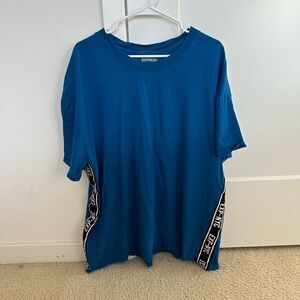 Express EXP-NYC Blue Racer Stripe Shirt Size Medium Street Wear Short Sleeve