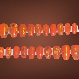 Handmade Custom Press on Nails UV Gel Short Coffin Fall Orange & Gold Metallic