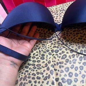Victoria’s Secret Bombshell mesh bra; size 38C. It’s a gorgeous navy blue color with mesh detail that stand out<3 The mesh on the sides and back, “Victorias Secret” spelled out in mesh detail. Has straps that come across the breasts for an even sexier look(; Hooks on the back and has 4 latches that you can adjust as needed; straps are also adjustable. Comes from my smoke and pet free home. Buyer pays fast shipping; FREE gift included<3 FOLLOW FOR MORE BOMBSHELL BRAS TO BE POSTED SOON🔥