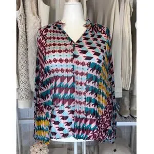 Ryegrass Women's Size XXL Multicolor Sheer Geometric Pleated Blouse #0141