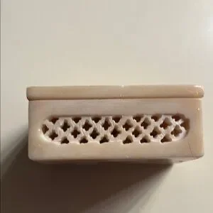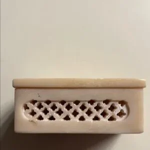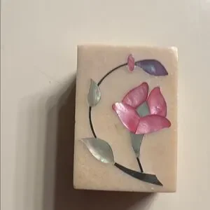 Vintage Floral Inlay Soapstone Dish