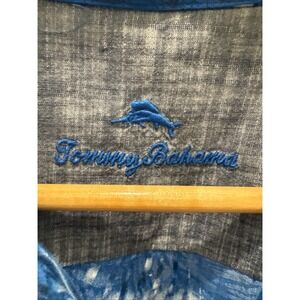 TOMMY BAHAMA Size L Palm Fronds Hawaiian Camp Shirt Blue