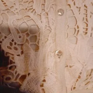 J. Jill cream colored Delight In The Details cardigan sweater size medium. Cute buttons and crocheted lace overlay on front. Only wore once, but it will need to be laundered because it has been hanging in closet. It's a little dusty on tops of shoulders.