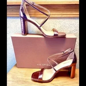 NIB-Via Spiga Metallic Strappy Leather Sandal
