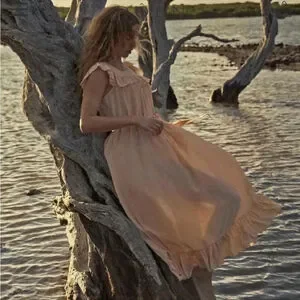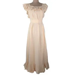 DOEN Sycamore Ruffled Silk Tiered Maxi Dress Size Small Sunlit Coral Peasant