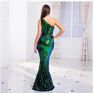 NWOT Elegant Sequin One-Shoulder Dress - Green and Blue large