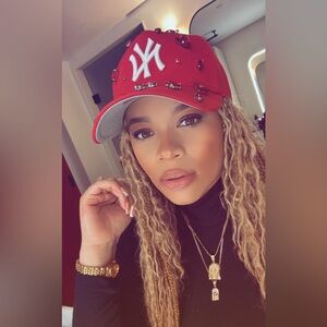 Embellished NY Logo Caps in Tan (Authentic)