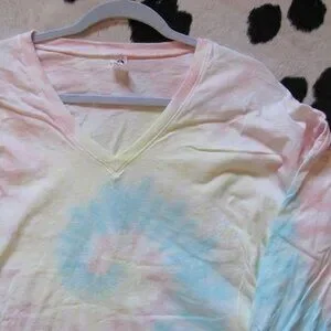 SPIRIT JERSEY UNISEX LONG SLEEVE TIE DYED V NECK TSHIRT