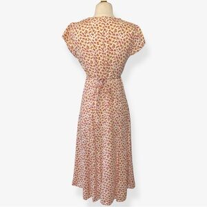 Charming floral midi dress by Reformation. Features a flattering V-neck, tie waist and short sleeves.