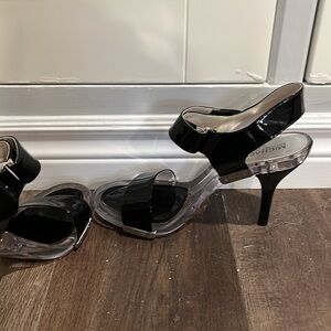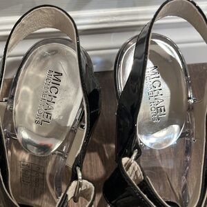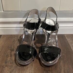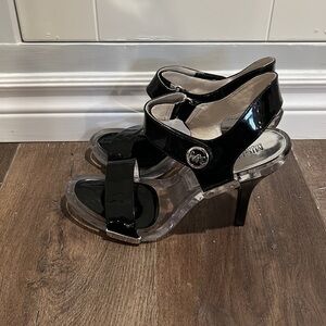 MICHAEL Kors leather rubber see through stilettos 9 M black. Logo detail