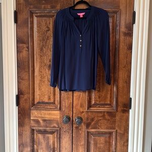 Bundle of 4 Lilly Pulitzer Elsa silk top in black, leopard, navy and merlot. The easiest, most comfortable tops that have sophisticated details that make an outfit more chic!