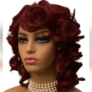 Pincurled Wig w/bangs - RED