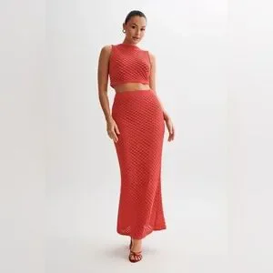 MESHKI GIULIANA KNIT MAXI SKIRT IN POMEGRANATE SIZE SMALL