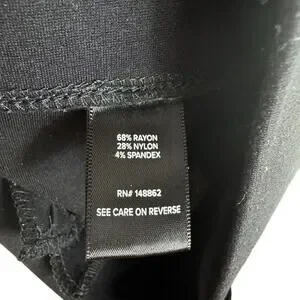 Excellent preowned condition, like new. Black high rise cropped skinny elastic waist pull on dressy leggings/pants. Thick knit fabric. Open pockets on front/back slash pockets (still factory-sewn shut). Rayon/nylon/spandex material. Approx. measurements: Waist 40", inseam 25", rise 12. Size 3X Tall.
