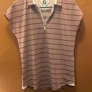FootJoy Women's Pink Striped Golf Polo Shirt - Stylish & Lightweight Med…
