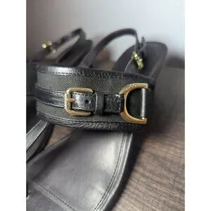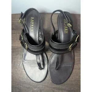 Ralph Lauren Womens Leather Adjustable Slingback T-Strap Thong Sandal Black 8