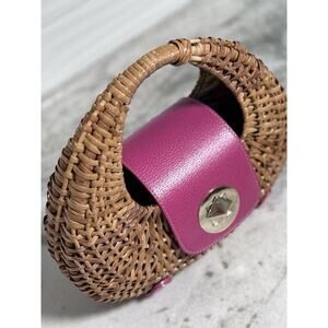Kate Spade Pink Leather Wicker Straw Handbag Purse